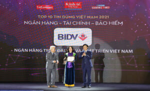 Đại diện BIDV nhận giải top 10 Tin dùng Việt Nam 2021. Ảnh: BIDV