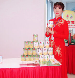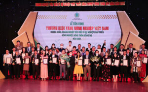 CEO kiêm Tổng Giám đốc Công ty Cổ phần Thực phẩm Á Châu Mai Thị Trâm Anh nhận giải Thương hiệu Vàng nông nghiệp Việt Nam.