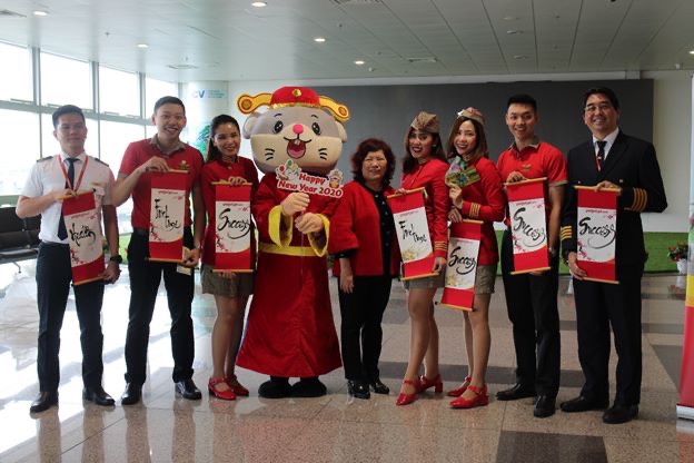 Hoa và quà được lãnh đạo hãng hàng không gửi tặng hành khách thay lời chúc năm mới may mắn, bình an và hạnh phúc. Hãng hàng không thế hệ mới đã mang tới cho những hành khách “xông đất” năm Canh Tý những phần quà thú vị cùng những câu chúc đầu năm may mắn, sức khỏe, thành công…