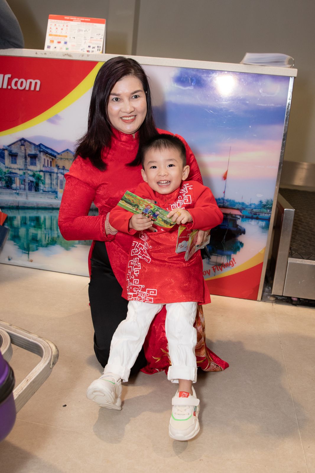 Những hành khách tất bật làm thủ tục cho chuyến bay trở về đón Tết đoàn viên cùng gia đình bất ngờ nhận quà lì xì của Giám đốc Điều hành Lưu Đức Khánh