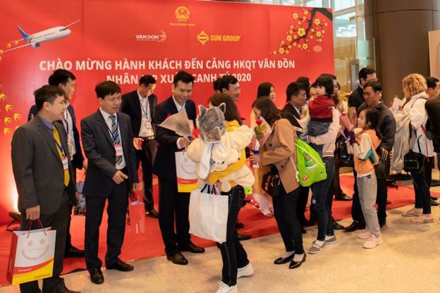 Chuyến bay Vietjet mang số hiệu VJ230 từ TP.HCM cũng là chuyến bay đầu tiên hạ cánh xuống Cảng hàng không quốc tế Vân Đồn. Lãnh đạo địa phương, cảng hàng không, đại diện Vietjet đã gửi tới các hành khách của chuyến bay những món quà mừng năm mới tốt lành.