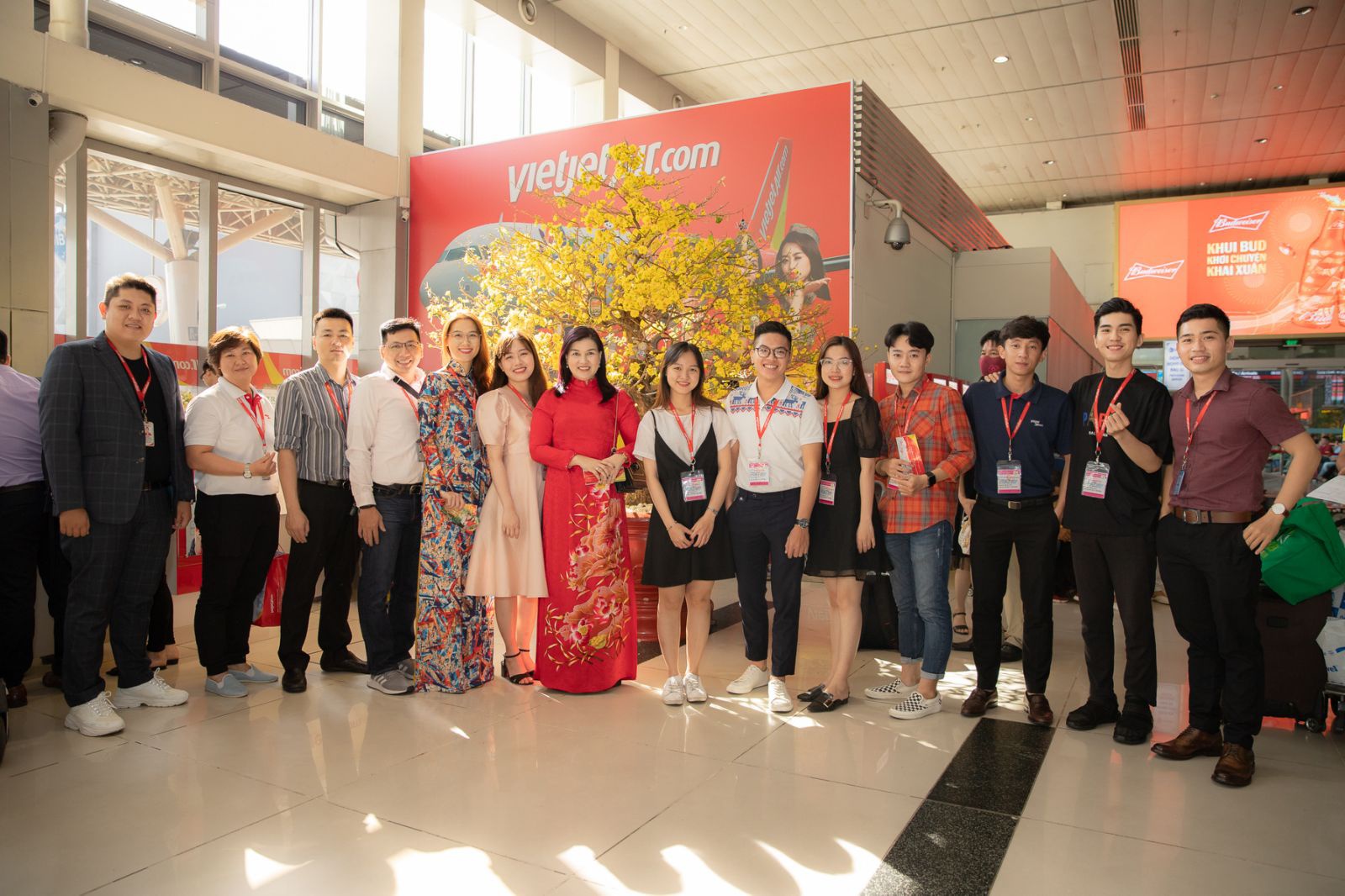 Lãnh đạo hãng hàng không Vietjet đã có mặt tại sân bay Tân Sơn Nhất để thăm, chúc tết các hành khách và các bộ phận đang làm việc không ngừng nghỉ tại đây.