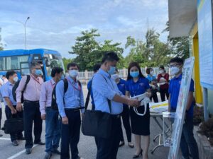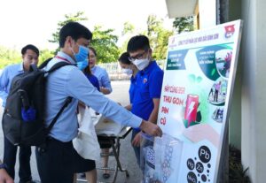 Bước 1: Người lao động mang pin cũ đến và bỏ vào các thùng thu gom pin được đặt tại vị trí (Cổng A2)
