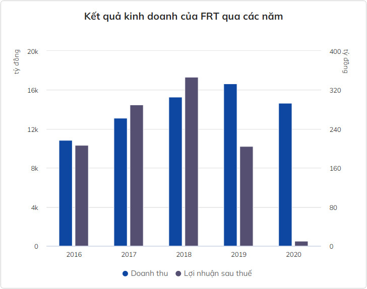Tính chung quý I/2021, doanh thu FRT đạt 4.665 tỷ đồng, tăng trưởng 19% so với cùng kỳ. Lợi nhuận sau thuế ước đạt 39 tỷ đồng, gấp 3,6 lần mức nền thấp cùng kỳ. Kết quả này giúp FRT đạt lần lượt 28% và 32% chỉ tiêu doanh thu và lợi nhuận dự kiến sẽ trình đại hội cổ đông thông qua vào ngày 29/4 tới.