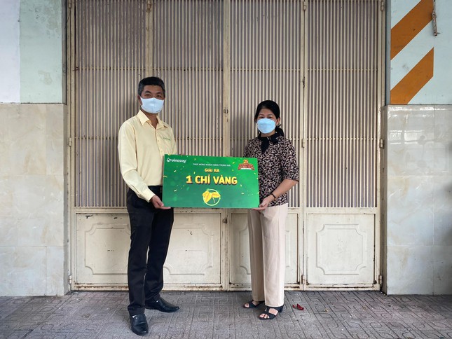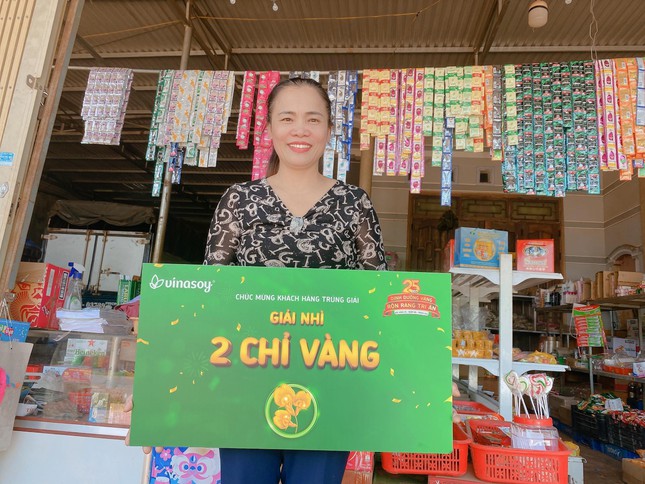 Đại diện Vinasoy đã trao tận tay giải thưởng vàng cho các khách hàng may mắn trúng giải trong tuần đầu tiên diễn ra chương trình.