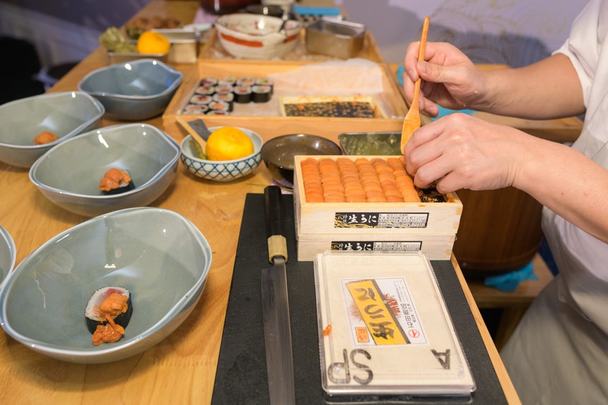 Ngày 22/4, Chef Tomohiro Sawaguchi – đầu bếp tại nhà hàng Sushi Rei – đã tạo nên những món ăn đậm chất Nhật Bản với chủ đề “Mùa xuân”, phục vụ theo nghệ thuật Omakase. Vị đầu bếp sử dụng những loại cá tươi ngon, nhập khẩu trực tiếp từ Nhật Bản và chỉ có vào mùa xuân.