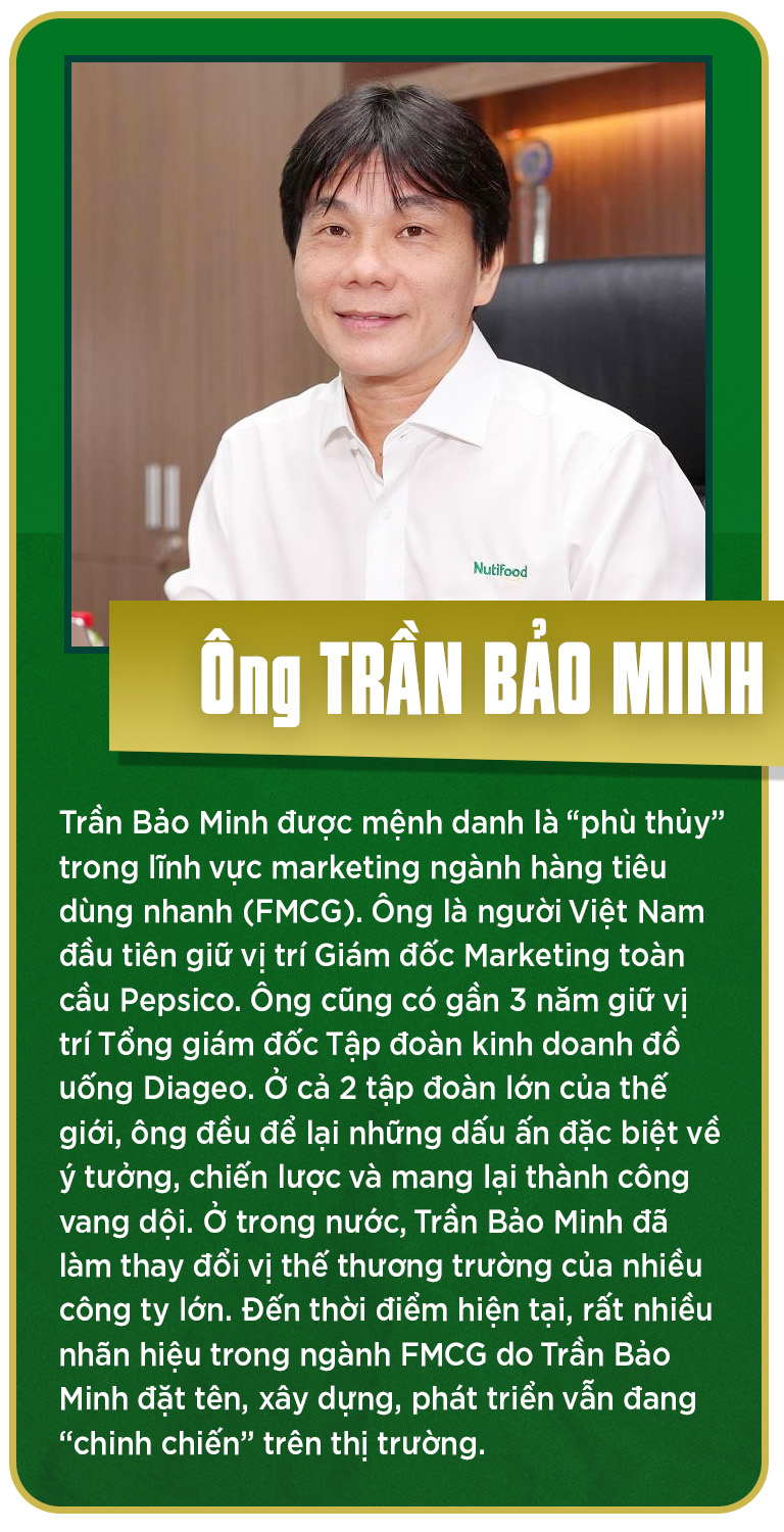 Thế nhưng, Minh bảo từ năm 2006 đến nay, anh không còn làm marketing nữa mà đi… xây nhà. Anh phải chọn từ nguyên vật liệu, thiết kế, thi công, giám sát… Ý là ở công ty, anh xây dựng những hệ sinh thái, không chỉ là các chiến dịch truyền thông. Mà đúng thật. Chỉ trong khoảng 1 năm cập bến Nutifood, các hệ sinh thái mang dấu ấn của Trần Bảo Minh đã ồ ạt tấn công thị trường. Đó là NuviWorld với tân binh đầu tiên Nuvi, nhãn sữa dành cho trẻ em. Nhưng Minh nhắc tôi “đừng nghĩ nó là thương hiệu sữa. Nó là thế giới của trẻ em mà để bất cứ sản phẩm nào dưới cái tên đó đều thuộc về trẻ em”. Đó là miền thảo mộc mang tên NutiZen với các loại nước giải khát bổ dưỡng có nguồn gốc từ loại thảo dược ở Quảng Nam như đẳng sâm, quế, nấm lim xanh, cây kế sữa… “Nếu em thông minh thì khi ra ngoài, em phải nói về sự thông minh chứ em thi chiều cao với sắc đẹp thì không thể cạnh tranh được. Chúng tôi làm nước giải khát nhưng là nước giải khát bổ dưỡng chứ không phải nước ngọt. Bởi ở “lãnh địa” nước ngọt, Nutifood chỉ là học trò và sẽ bị các “ông lớn” trong ngành này đánh cho bầm dập. Ngược lại, ở miền thảo dược NutiZen, họ không là gì với tôi cả”, Trần Bảo Minh vẫn thế, tự tin đến ngạo nghễ. Đến lúc này thì tôi hiểu. Xây dựng năng lực cạnh tranh cho công ty dựa trên nền tảng gì và trên nền tảng đó, chỉ cạnh tranh bằng những sản phẩm nào mà không bao giờ xâm phạm vào những sản phẩm khác. Đó chính là đẳng cấp “phù thủy marketing” Trần Bảo Minh chứ không phải chỉ “đốt tiền” quảng bá như cách mà thiên hạ vẫn nói về anh.