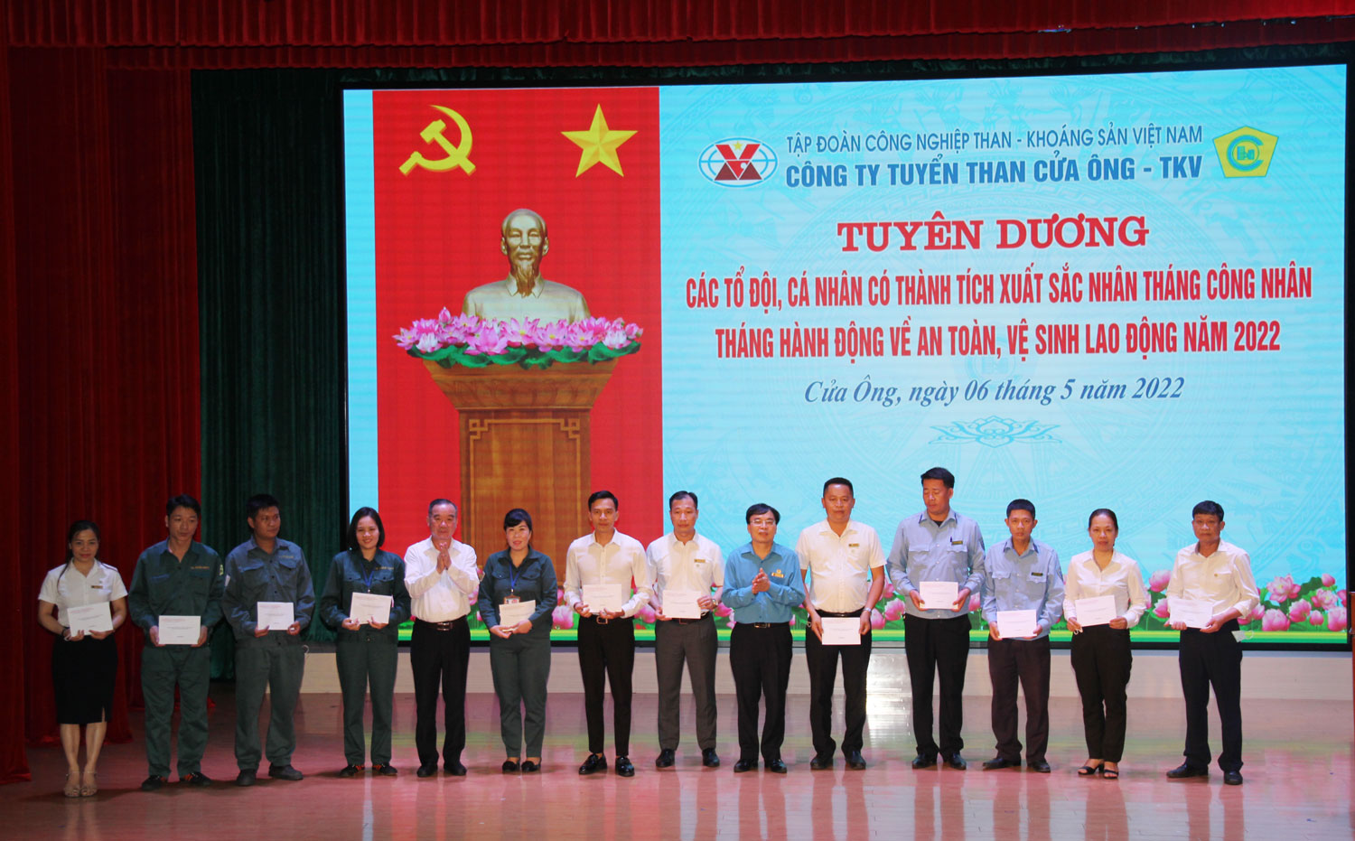 Nhân dịp này, Công đoàn TKV đã tặng thưởng 03 phân xưởng xuất sắc tiêu biểu của Công ty Tuyển than Cửa Ông mỗi đơn vị 10 triệu đồng. Công ty Tuyển than Cửa Ông khen thưởng 12 tổ sản xuất và 24 cá nhân có thành tích xuất sắc trong lao động sản xuất.