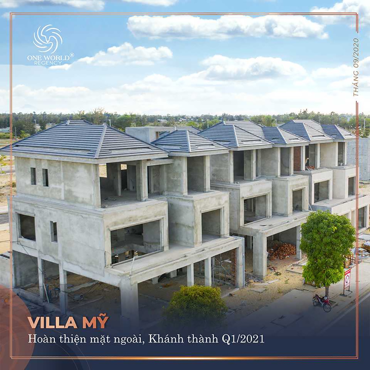 Hiện nay, các căn biệt thự khu villas Mỹ đã hoàn thiện phần thô, ốp đá Marble Pelato nhập khẩu từ Ý toàn bộ mặt ngoài. Trong vài tháng hoàn thiện sắp đến, Đất Xanh Miền Trung bố trí tại các căn villas Mỹ này các khu chức năng: cửa hàng thực phẩm 5 sao Regal Food, Regal Hotels, khu Gym, khu cà phê và nhà hàng, khu vui chơi trẻ em…