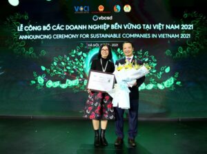 Bà Đỗ Hoàng Anh – Giám đốc Pháp chế và Đối ngoại, BAT khu vực Đông Á, đại diện BAT nhận bằng khen “Top 100 Doanh nghiệp Phát triển Bền vững Nhất Việt Nam 2021”