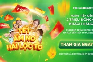 Nhằm mang đến cho khách hàng một năm mới thật may mắn và trọn vẹn, từ nay đến hết 31.1.2022, FE CREDIT (thương hiệu thuộc Công ty Tài chính VPBank SMBC) triển khai game bắt lì xì “Tết ấm no, hái lộc to”. Chương trình dành cho tất cả khách hàng với cách thức tham gia đơn giản cùng hàng ngàn giải thưởng hấp dẫn.