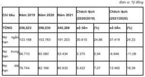 Bảng 1: Kết cấu dư nợ phân loại theo thời hạn của Ngân hàng Sacombank (2019 – 2021)