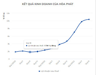 Mức lãi này gấp 2,7 lần so với cùng kỳ năm trước và là lần đầu tiên Hòa Phát đạt quy mô lợi nhuận trên 10.000 tỷ đồng chỉ trong một quý.