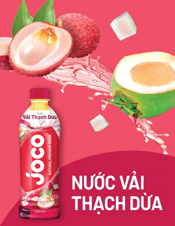 Bên cạnh các hương vị đã quen thuộc như nha đam, yến nha đam, chanh dây, nước trái cây Joco mới cho ra mắt hương vị vải thạch dừa độc lạ. Nước ép vải tươi ngọt thanh thơm dịu, nay lại càng trở nên thu hút và hấp dẫn khi được bổ sung thêm topping thạch dừa giòn dai sần sật, cảm giác giống như một ly trà sữa trân châu vậy.