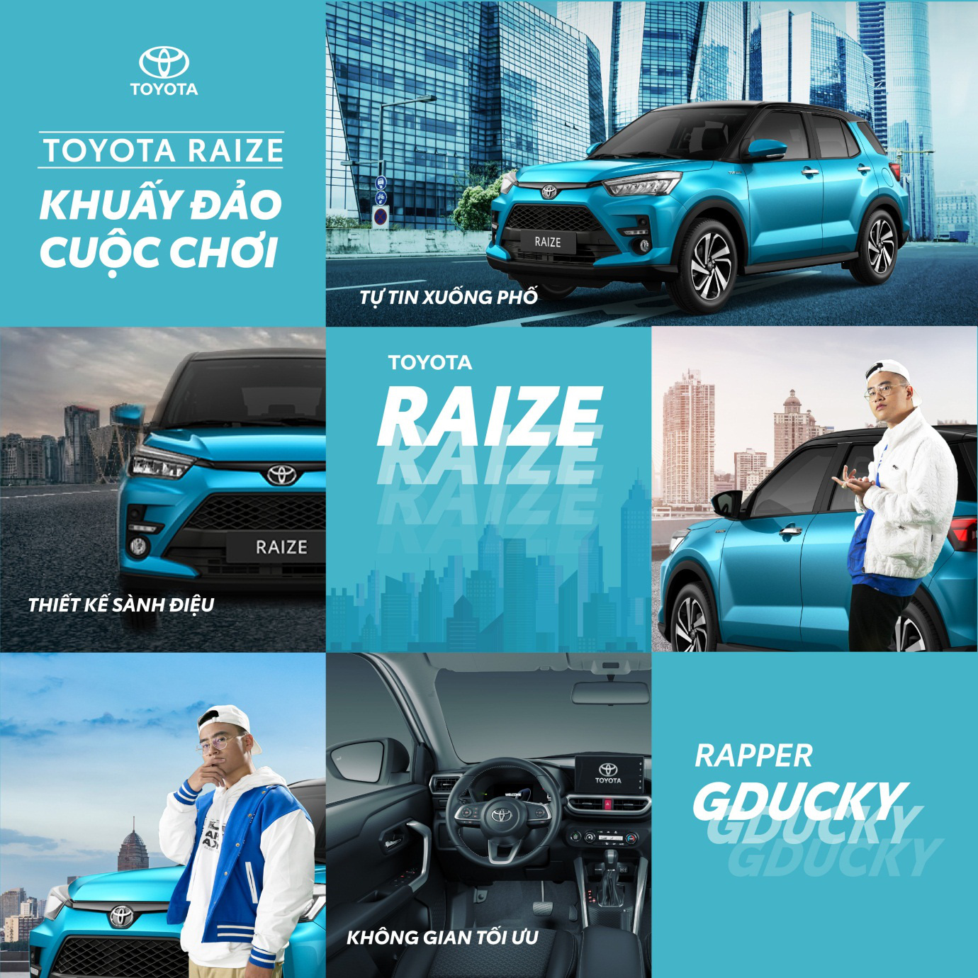 Raize là mẫu SUV đô thị cỡ nhỏ hoàn toàn mới vừa được Toyota giới thiệu ra thị trường. Với slogan “Raise the Game” (Khuấy đảo Cuộc chơi), mẫu xe này như một “cơn địa chấn” trên toàn thị trường ô tô, cũng như cách mà GDucky tạo điểm nhấn trong cuộc thi Rap Việt: rất “cool, ngầu”, luôn bùng nổ, nhưng vẫn giữ được sự tinh tế và thông minh trong cách gieo vần từng lời rap. Raize đã gây ấn tượng mạnh đến nỗi khiến chàng rapper trẻ tuổi sáng tác hẳn một bài rap cực chất cho người bạn Raize của mình.