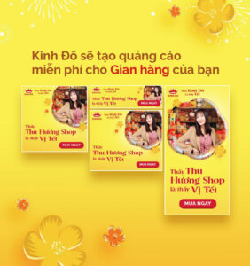 Chỉ cần điền tên cửa hàng, đường link dẫn đến cửa hàng, một hình ảnh và một từ miêu tả thích hợp nhất, Kinh Đô sẽ hỗ trợ thiết kế banner và thực hiện chiến dịch quảng cáo miễn phí cho gian hàng của bạn.