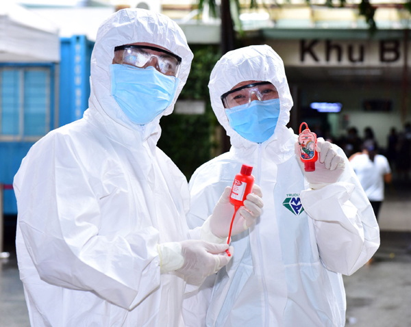 Ngoài ra, Lifebuoy còn gửi thêm 2.000 chai nước rửa tay khô 50ml kèm túi đựng mang hình ảnh Thánh Gióng – một trong những biểu tượng cho sự kiên cường, dũng cảm trong lịch sử văn hóa Việt Nam, như lời cảm ơn chân thành, niềm tin vững chắc của người dân gửi gắm đến các y bác sĩ tuyến đầu.