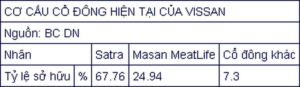 Hiện tại, cổ đông lớn nhất của Vissan vẫn là Tổng công ty Thương mại Sài Gòn (Satra) với gần 55 triệu cổ phiếu nắm giữ, tương đương 67,76% vốn doanh nghiệp.