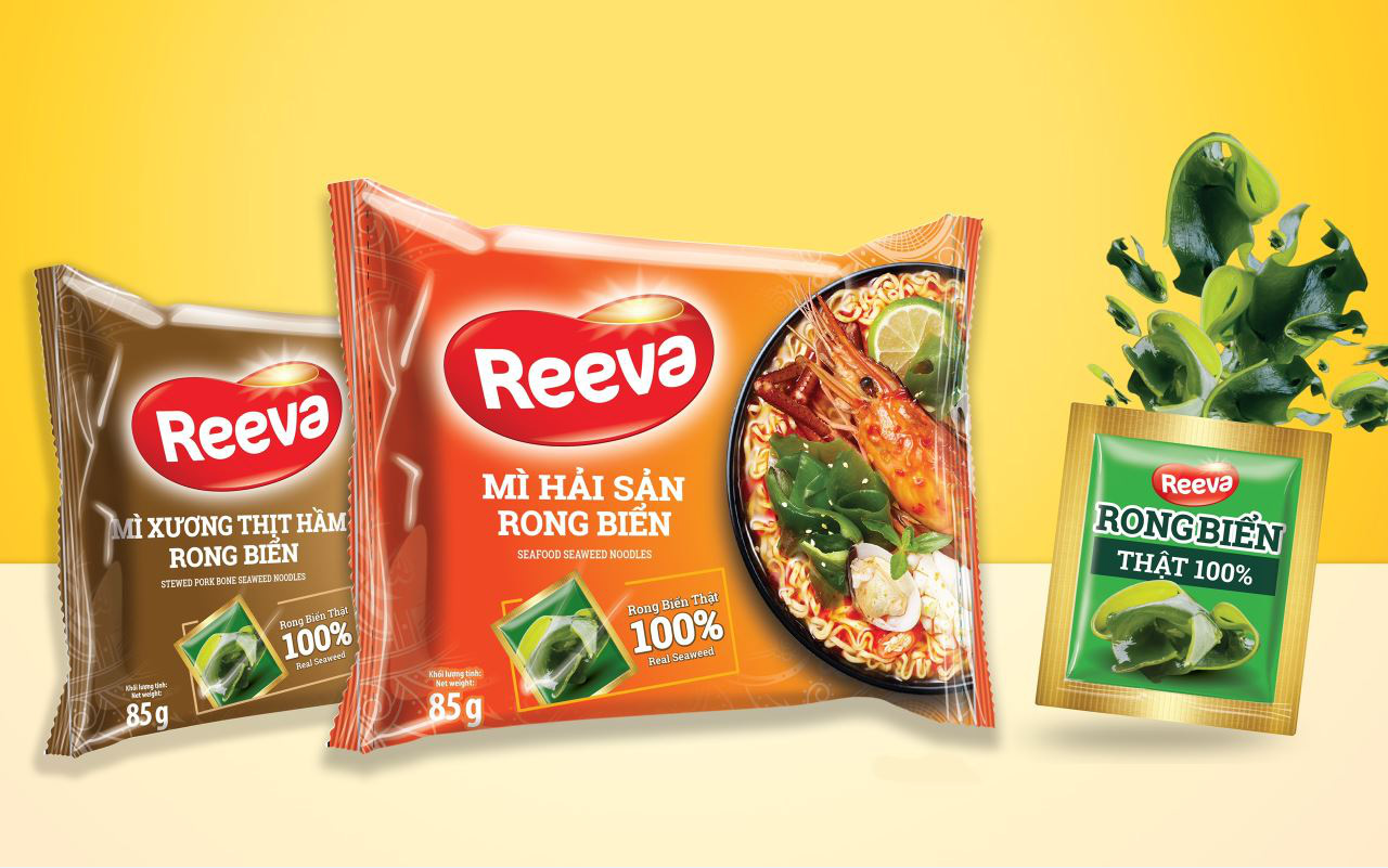 Reeva là thương hiệu với các dòng sản phẩm mì, phở ăn liền cao cấp, thơm ngon, bổ dưỡng từ nguyên liệu tự nhiên với nấm bào ngư, rong biển tươi 100%, đã được người tiêu dùng trong nước đón nhận rộng rãi và xuất khẩu sang hơn 16 quốc gia trên thế giới, trong đó có những quốc gia với các tiêu chuẩn nghiêm ngặt về chất lượng và vệ sinh an toàn thực phẩm như châu Âu, Mỹ, Nhật Bản, Hàn Quốc…