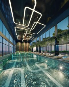 Phối cảnh bể bơi tầng thượng sang trọng, mang đến những giây phút thư giãn cho cư dân