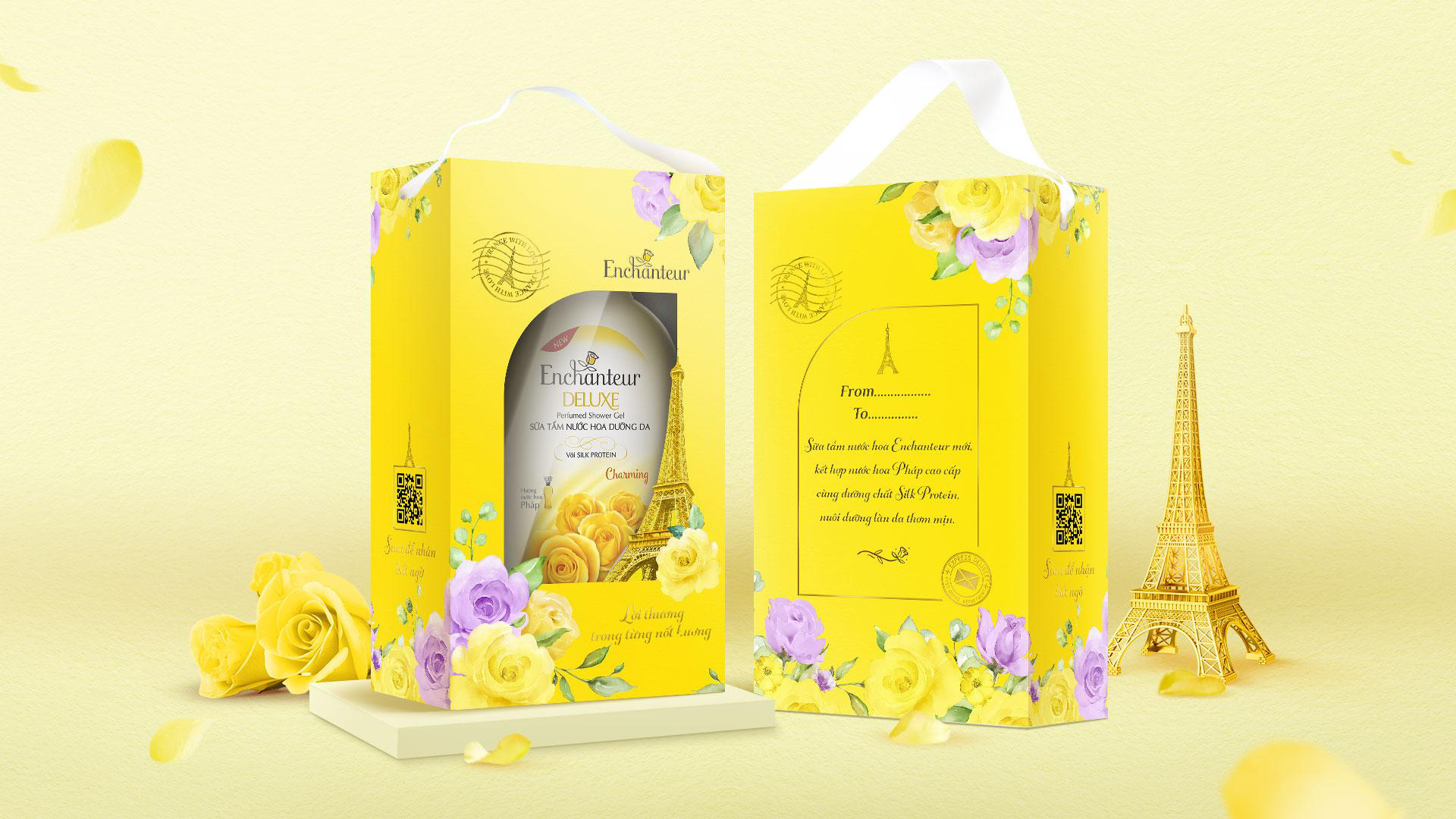 – Hộp quà Sữa tắm dưỡng da Enchanteur hương Sensation nồng ấm, quý phái, dành cho người phụ nữ ấm áp, trang nhã.