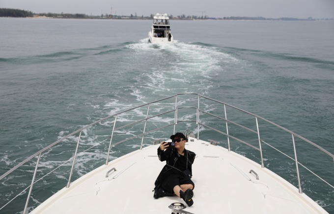 Nhà thiết kế Đỗ Mạnh Cường ghi lại khoảnh khắc đẹp khi dạo chơi du thuyền.