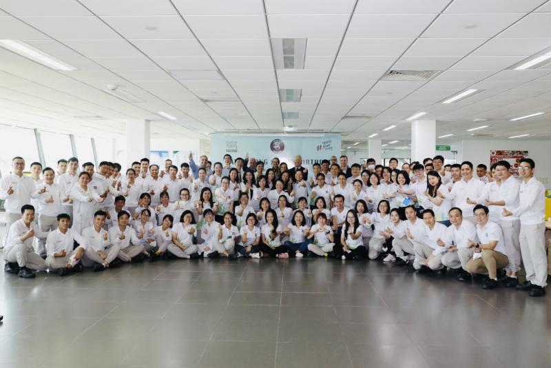 Cán bộ công nhân viên nhà máy Nestlé Bông Sen chụp hình kỷ niệm cùng các quan khách nhân dịp kỷ niệm 5 năm nhà máy chính thức hoạt động