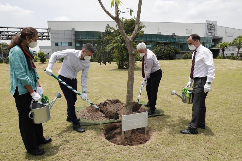 Đại sứ Thụy Sỹ tại Việt Nam cùng cán bộ Đại sứ quán trồng cây tại khuôn viên nhà máy Nestlé Bông Sen