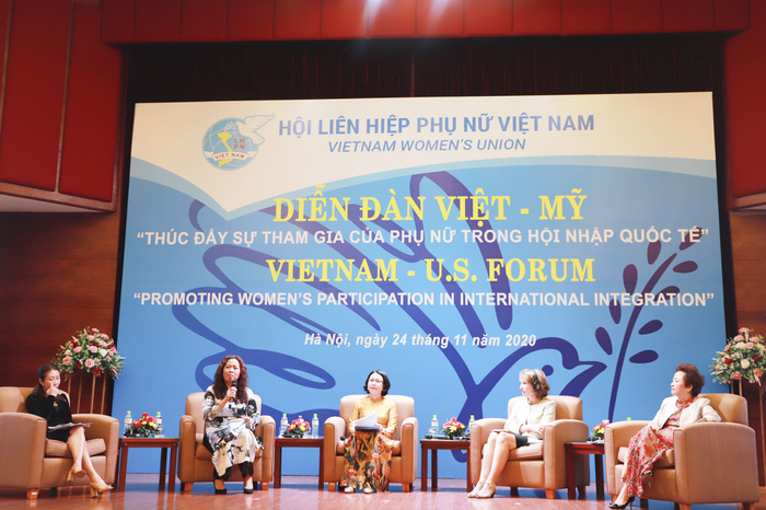 Bà Nguyễn Thị Bích Vân – Chủ tịch Unilever Việt Nam chia sẻ tại phiên thảo luận “Hỗ trợ phụ nữ hội nhập kinh tế quốc tế” trong Diễn đàn Việt – Mỹ