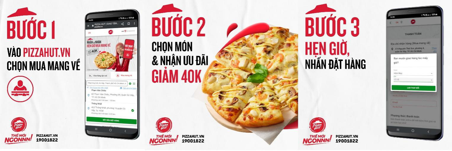 Thao tác đơn giản và chỉ cần hẹn giờ mua mang về, Pizza Hut tiên phong và “tái định nghĩa” xu hướng đặt hàng ngay trong bối cảnh đại dịch.