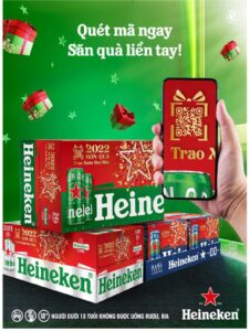 Song hành cùng dịp lễ tết của người Việt Nam, Heineken phiên bản mùa lễ hội 2022 đã chính thức ra mắt để cùng khách hàng chào đón năm mới bừng sắc. Bao bì sản phẩm năm nay được trang hoàng đẹp mắt và đẳng cấp, mang đậm không khí mùa lễ hội với sắc vàng – đỏ kết hợp trên nền thiết kế mang tính biểu tượng quen thuộc của Heineken. Đặc biệt, khách hàng có thể quét mã QR trên bao bì để tham gia hoạt động Trao Quà Kỳ Diệu và gửi đi thông điệp cùng ý tưởng món quà mùa lễ hội của chính mình.