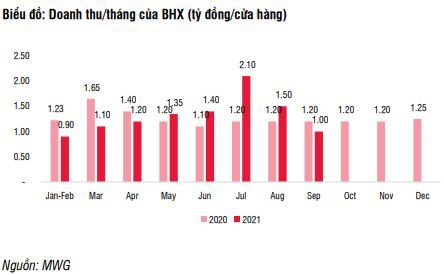 MWG hiện có 1.934 cửa hàng Bách Hóa Xanh (BHX), tăng 215 cửa hàng so với đầu năm đồng thời nâng cấp 291 cửa hàng BHX lên quy mô lớn hơn so với đầu năm (> 500 m2). SSSG trong quý 3/2021 tăng lên 33% nhờ các chợ đầu mối và chợ truyền thống tại TP. HCM đóng cửa trước đó và hành vi tích trữ hàng hóa của người tiêu dùng.