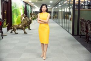 Bà Uyên Phương bên ngoài văn phòng Tập đoàn Tân Hiệp Phát tại Bình Dương. Ảnh: NVCC