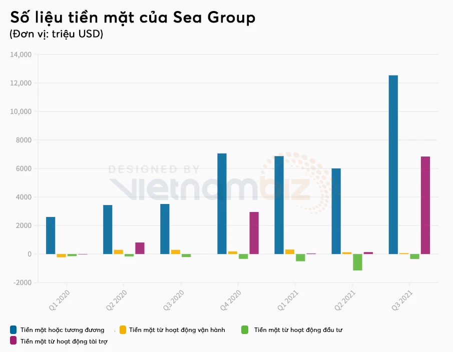 Sea vẫn đang có trong tay 12,52 tỷ USD tiền mặt hoặc tương đương tiền mặt, điều này thể hiện “sức mạnh” thanh khoản của công ty Internet lớn nhất Đông Nam Á. (Nguồn: Sea/Tech in Asia, Việt hoá: Thái Sơn).