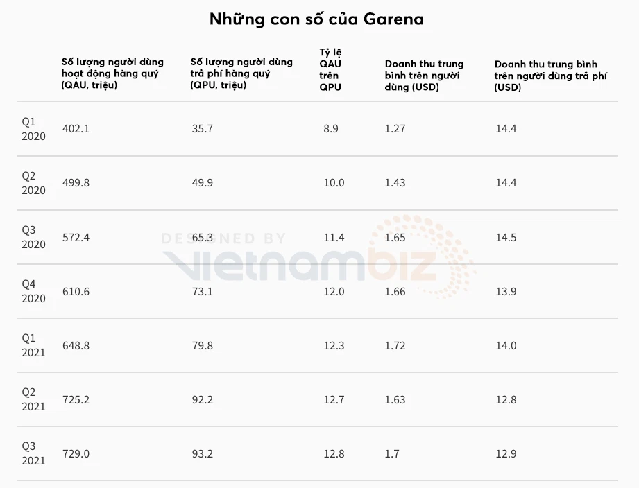 Doanh thu bao gồm tất cả doanh thu do Garena thu về trong một khoảng thời gian cụ thể. Doanh thu GAAP không tính đến các khoản doanh thu chưa thực hiện. Dưới tiêu chuẩn GAAP, doanh thu thu về từ một trò chơi trong một khoảng thời gian được trải đều suốt vòng đời dự kiến của nó. (Nguồn: Sea/Tech in Asia, Việt hoá: Thái Sơn).