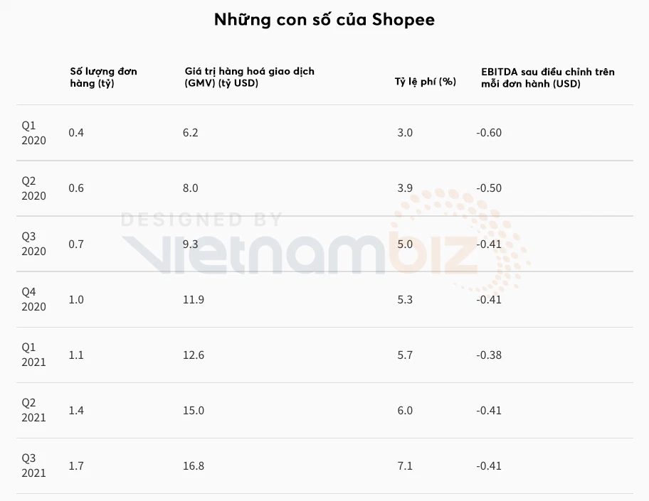 Shopee vẫn đang lỗ trên từng đơn hàng. Cho tới nay, chiến lược ưu tiên tăng trưởng hơn lợi nhuận của Shopee/Sea vẫn được các nhà đầu tư ủng hộ. (Nguồn: Sea/Tech in Asia, Việt hoá: Thái Sơn).