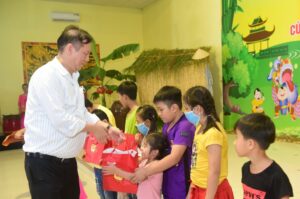 Ông Trần Lệ Nguyên, Tổng giám đốc Tập đoàn Kido tận tay trao bánh Trung thu Kingdom cho những em bé có hoàn cảnh khó khăn.