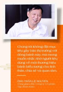 “Bánh Trung thu Kingdom là tâm huyết đã ấp ủ từ lâu của ban lãnh đạo tập đoàn. Chúng tôi không đặt mục tiêu gây bão thị trường với dòng bánh này, mà mong muốn nhắc nhớ người tiêu dùng về một thương hiệu bánh biểu tượng cho tình thân, chia sẻ và quan tâm. Sứ mệnh của Kingdom là tạo không khí thật sự cho mùa lễ hội, tiếp nối truyền thống tốt đẹp của người Việt”, ông Trần Lệ Nguyên tâm đắc.