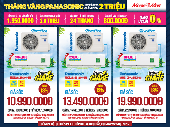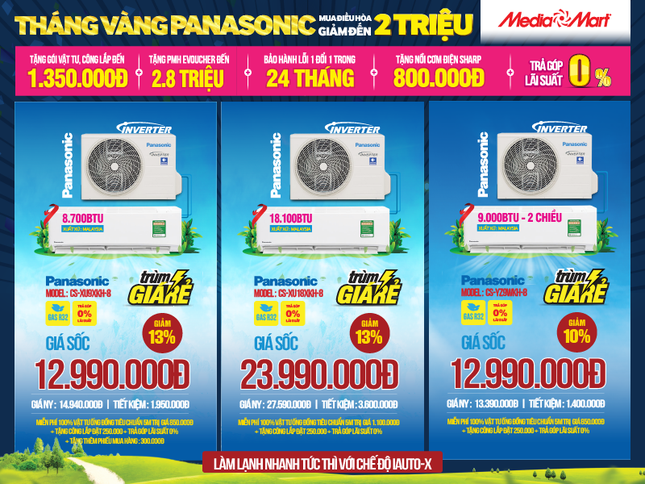 Tháng vàng Panasonic: Mua điều hòa giảm đến 2 triệu, bao trọn phí tại MediaMart