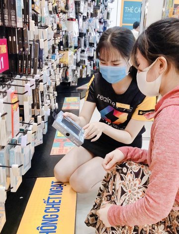 Người dân mua pin, sạc dự phòng tại Thế Giới Di Động, Điện Máy Xanh.