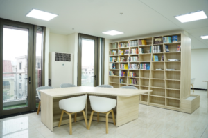 Trong không gian thư viện tràn ngập ánh sáng, các cư dân có thể tìm thấy những cuốn sách yêu thích với đa dạng chủ đề như: văn học, tôn giáo, phóng sự, bút ký, kỹ năng, thiếu nhi, tạp chí, khoa học và đời sống… Đồng thời, thư viện cũng được lắp đặt đầy đủ các trang thiết bị như bàn ghế, ổ cắm điện và các thiết bị hỗ trợ khác giúp cư dân có khoảng thời gian thoải mái nhất tại đây.
