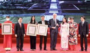 Ông Nguyễn Anh Tuấn, Phó Tổng Giám đốc T&T Group (thứ tư từ trái qua) thay mặt tập đoàn nhận giải Đặc biệt cho đồ án Quy hoạch Bảo tồn, tôn tạo và phát huy giá trị Di tích Quốc gia đặc biệt Khu lưu niệm Chủ tịch Hồ Chí Minh tại Kim Liên, Nam Đàn, Nghệ An. Ảnh: T&T Group