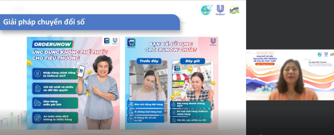 Phó Chủ tịch Marketing ngành hàng Chăm sóc gia đình Unilever Việt Nam chia sẻ về ứng dụng OrderUNow. Ảnh: Unilever Việt Nam.