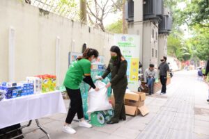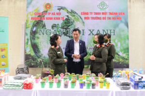 Tham dự chương trình và trực tiếp thực hiện hoạt động thu đổi rác tái chế lấy quà có Thượng tá Cao Thị Hồng Minh – Phó Trưởng phòng An ninh Kinh tế – Công an Thành phố Hà Nội, đồng chí Đặng Hữu Bình – Phó Tổng Giám đốc Công ty TNHH MTV Môi trường đô thị Hà Nội (URENCO).