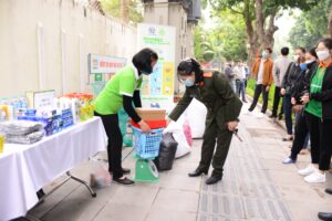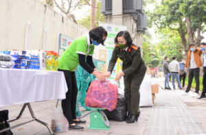 Thượng tá Cao Thị Hồng Minh – Phó Trưởng phòng An ninh Kinh tế – Công an Thành phố Hà Nội trực tiếp tham gia thực hiện đổi rác tái chế tại chương trình