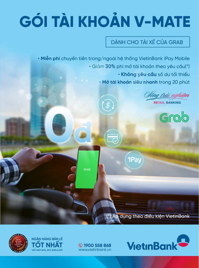 Nhằm hỗ trợ việc quản lý thu nhập, tiết giảm chi phí, từ 9/3, VietinBank triển khai gói tài khoản thanh toán V-Mate dành riêng cho các tài xế Grab, với nhiều ưu đãi hấp dẫn.