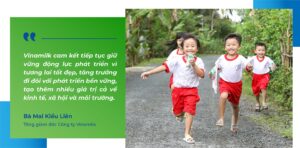 Với những hành động thiết thực, Vinamilk được nhớ đến là “thương hiệu gắn bó cộng đồng”. Trong chặng đường phát triển của mình, mỗi chương trình do thương hiệu sữa Việt thực hiện đều xuất phát từ sự quan tâm chia sẻ, yêu thương và niềm hy vọng dành cho các mầm xanh của đất nước. Hành trình ấy vẫn đang tiếp nối mỗi ngày trong suốt 45 năm qua, góp phần cải thiện dinh dưỡng, nâng cao tầm vóc, chắp cánh ước mơ cho thế hệ tương lai Việt Nam vươn cao và vươn xa.