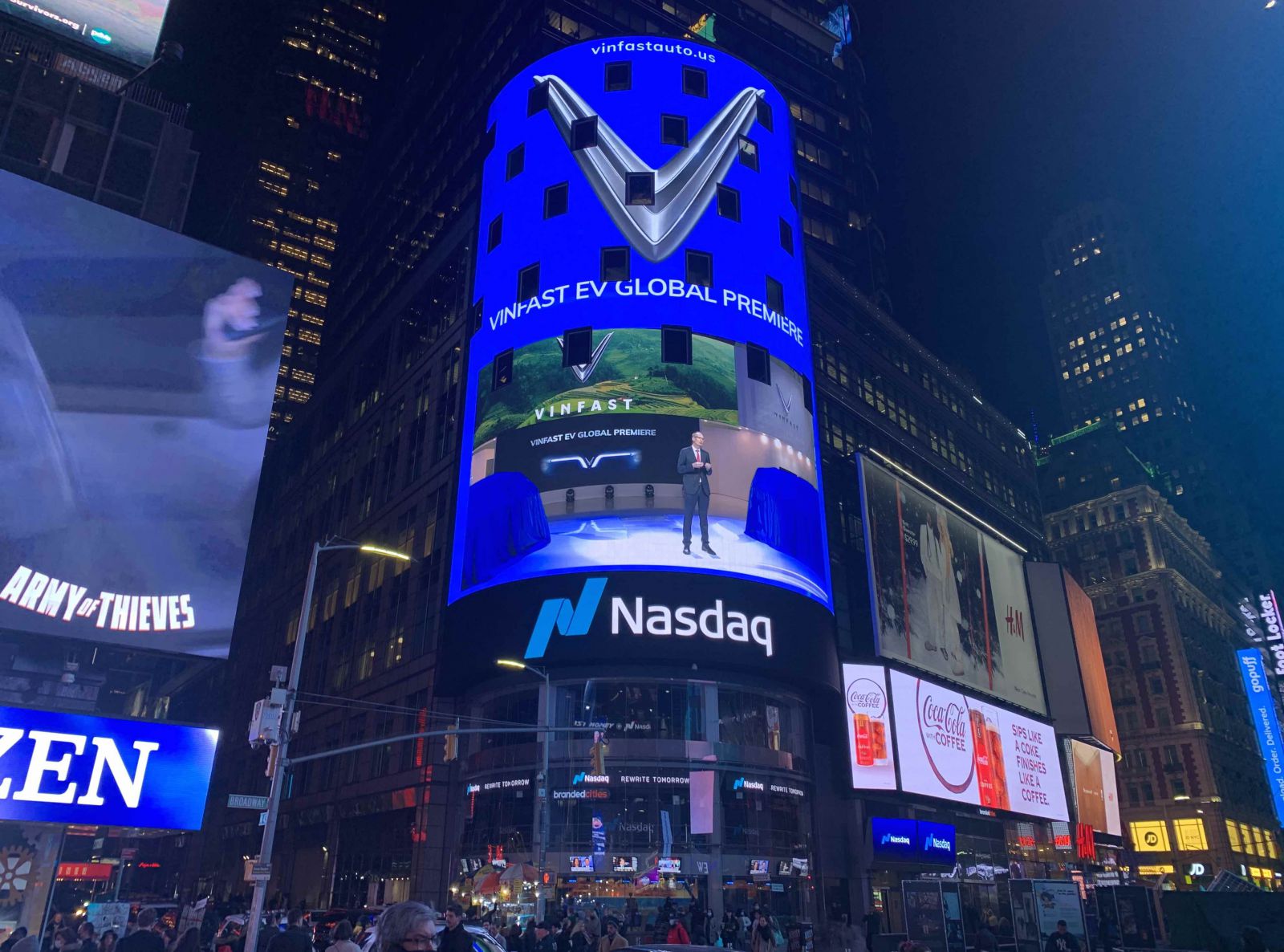 Lễ ra mắt xe điện của VinFast được trực tiếp lên sóng trực tiếp tại Quảng trường Thời đại, New York.