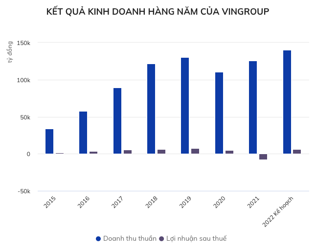 Trong năm 2021 trước đó, Vingroup ghi nhận 125.588 tỷ đồng doanh thu thuần, tăng 14% so với năm liền trước, tuy nhiên sau khi trừ các khoản chi phí phát sinh và chi phí thuế, công ty ghi nhận khoản lỗ ròng 7.558 tỷ đồng.