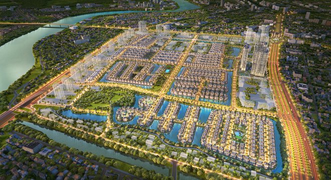 Phân khu Hướng Dương được kiến tạo theo phong cách resort Venice bên những dòng kênh đào, mang đến không gian sống cao cấp. Ảnh phối cảnh.